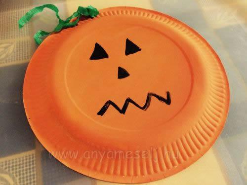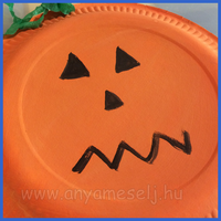 Egy papírtányért fessetek be narancssárgára (már az is remek szórakozás, hogy kikeverjük ezt a színt fehérből és pirosból),