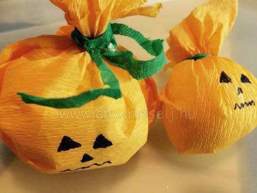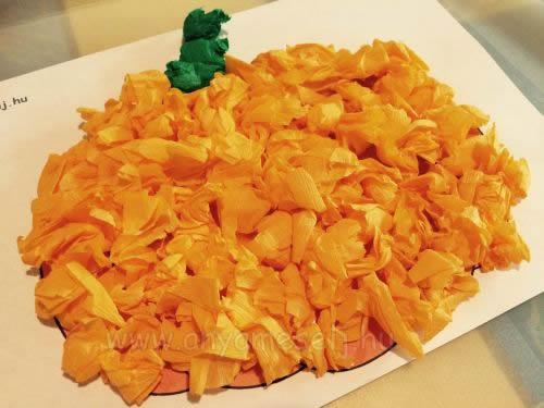 és ráragasszátok a papírtökre, vagy ráfestitek. Mi krepp papírból készítettünk neki tökindát is.
