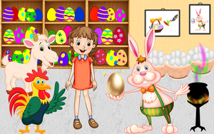 - Jól van, nem haragszok, csak ne bőgj már. Tudod mit csinálunk? Elmegyünk nyúl bácsihoz, és megkérjük fessen neked arany tojást.