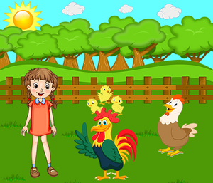 Az udvaron Gyuri kakas peckesen sétált a csirkék között. Tyúkanyó és kakas apó a távolból gyönyörködtek csibéikben.