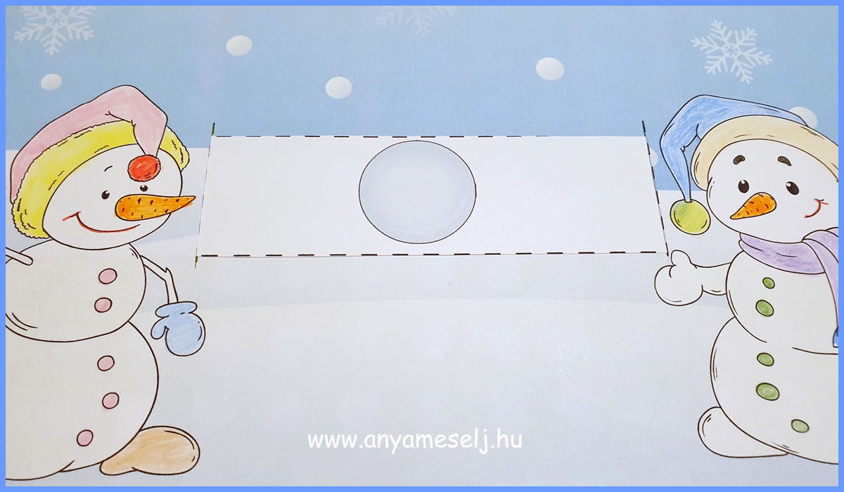 Vágd ki a hógolyócsíkot is és fűzd be a két szaggatott vonal közé.