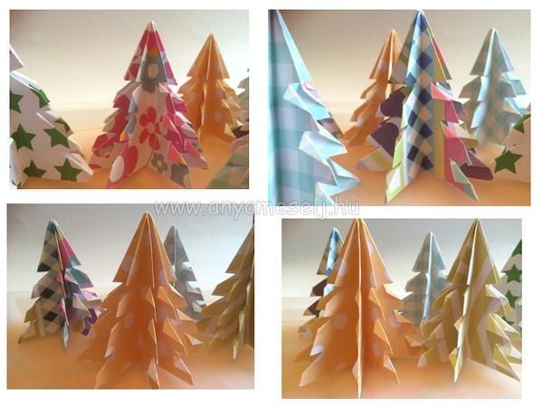 A meseolvasás után pedig nekiálltunk színes karácsonyfákat hajtogatni. Úgy belejöttek, hogy egy egész erdőnyit hajtogattak.