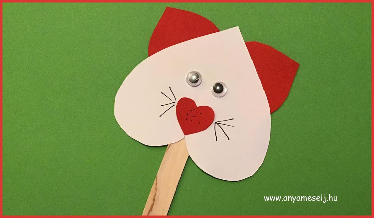 Kettő darab mozgó szem, és rajzolt bajusz, máris kész a Valentin napi cica. Ha spatulára ragasztod, akkor bábozni is lehet vele.