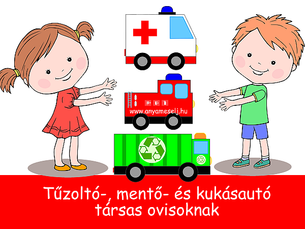 - A tűzoltó-, mentő- és kukásautó sablon, amit a 7végi mesezsákban találsz